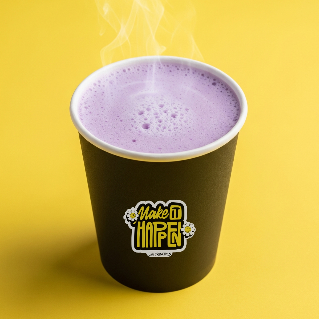 Deliciosa combinación de leche, nuestra base de frappé, taro, acompañado de crema batida.