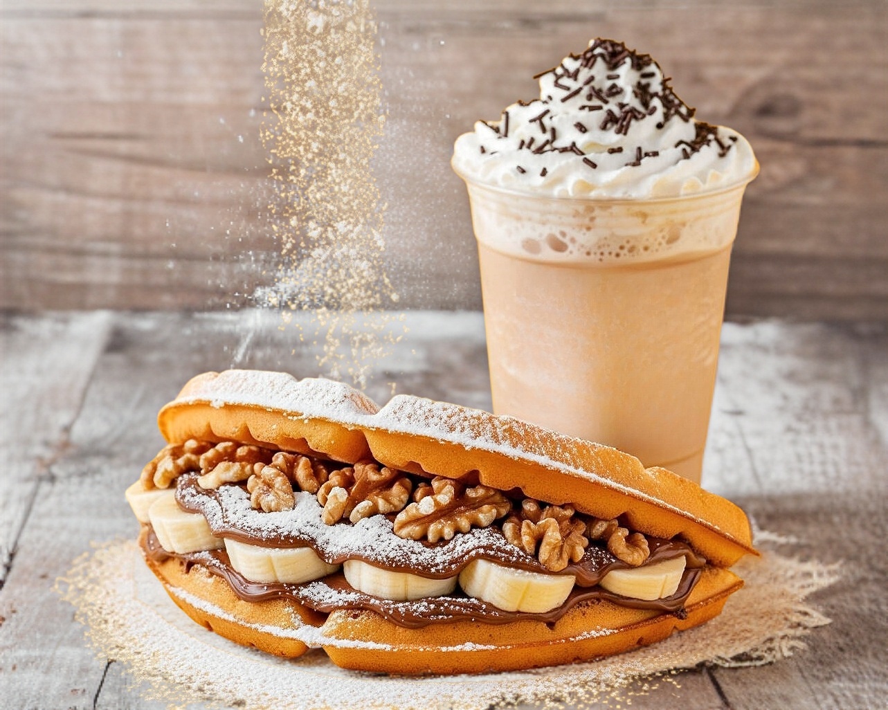 Waffle Dulce Tipo Sándwich Banano*1 + Frappé de Cappuccino*1