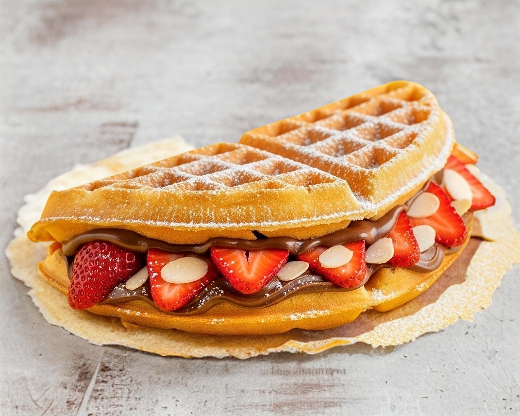 Waffle Dulce Tipo Sándwich Fresas con Crema