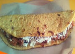 Rica memela.con quesilo, salsa cebolla y bistec de cerdo