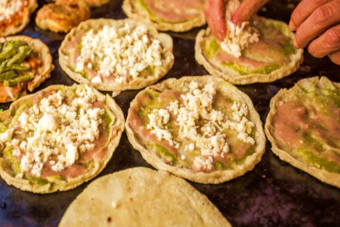 Tradicional picadita, rellena de frijoles recién hechos y queso fresco, acompañadas de tu salsa favorita