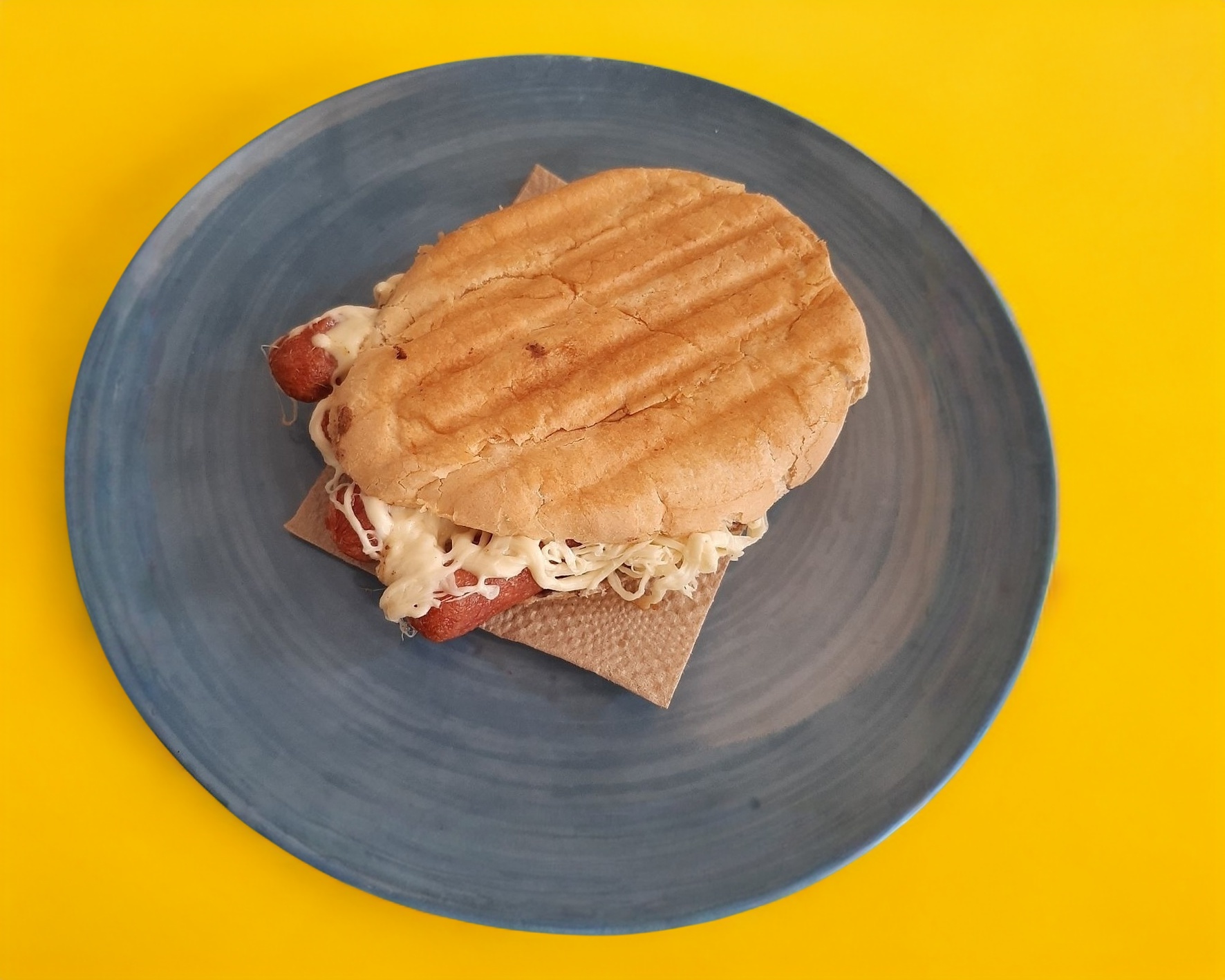 Torta plancha de salchicha, mantequilla, frijoles, agucate y picante al gusto rajas caseras o chipotle