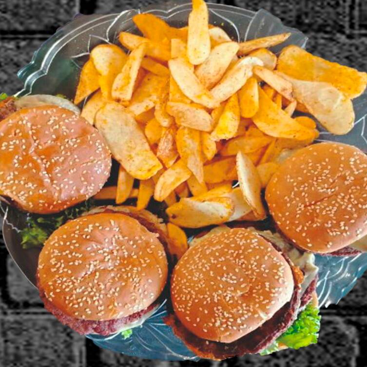4 Hamburguesas mas orden chica de papas (puede agregar refresco por $ accesible)