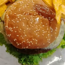 1 Hamburguesa (carne queso, ketchup, mostaza, mayonesa, jitomate, cebolla, lechuga pepinillos)