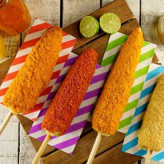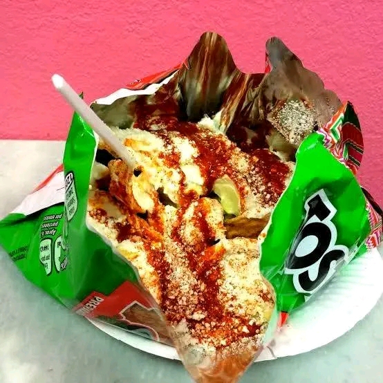 Tostitos, esquites,mayonesa, queso añejo, queso amarillo, salsa.
