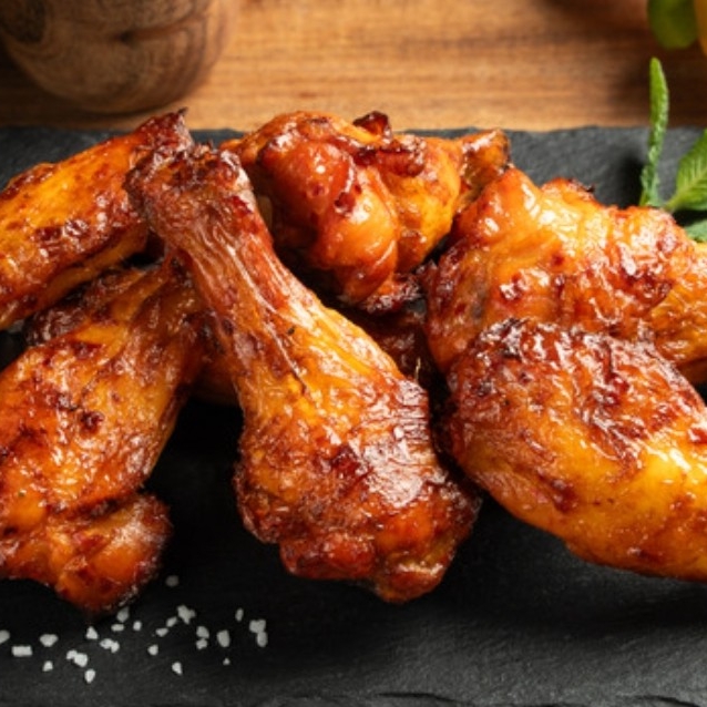 Ocho piezas de alitas marinadas acompañada de su salsa a elegir