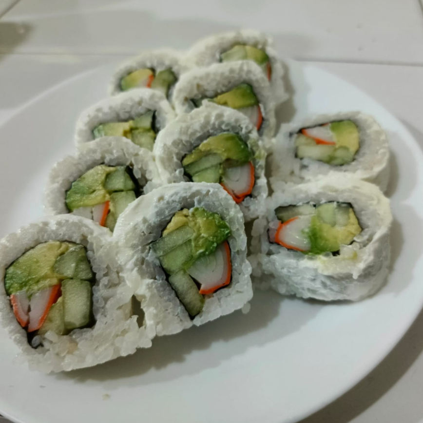 Surimi, pepino, aguacate, queso crema.
