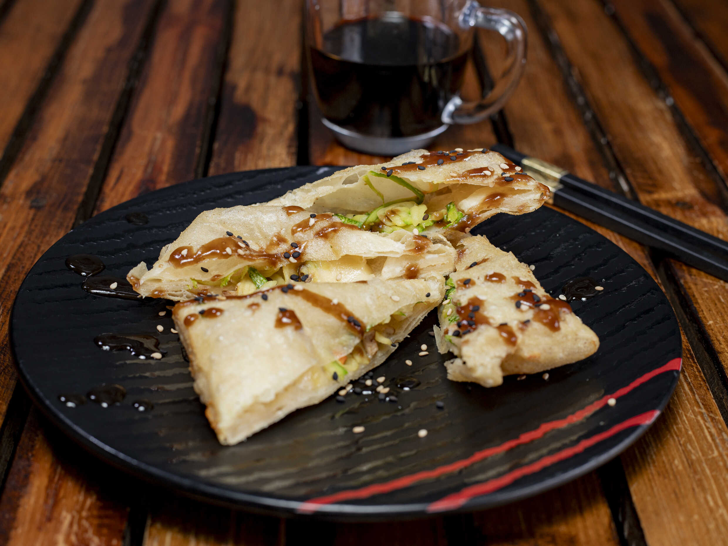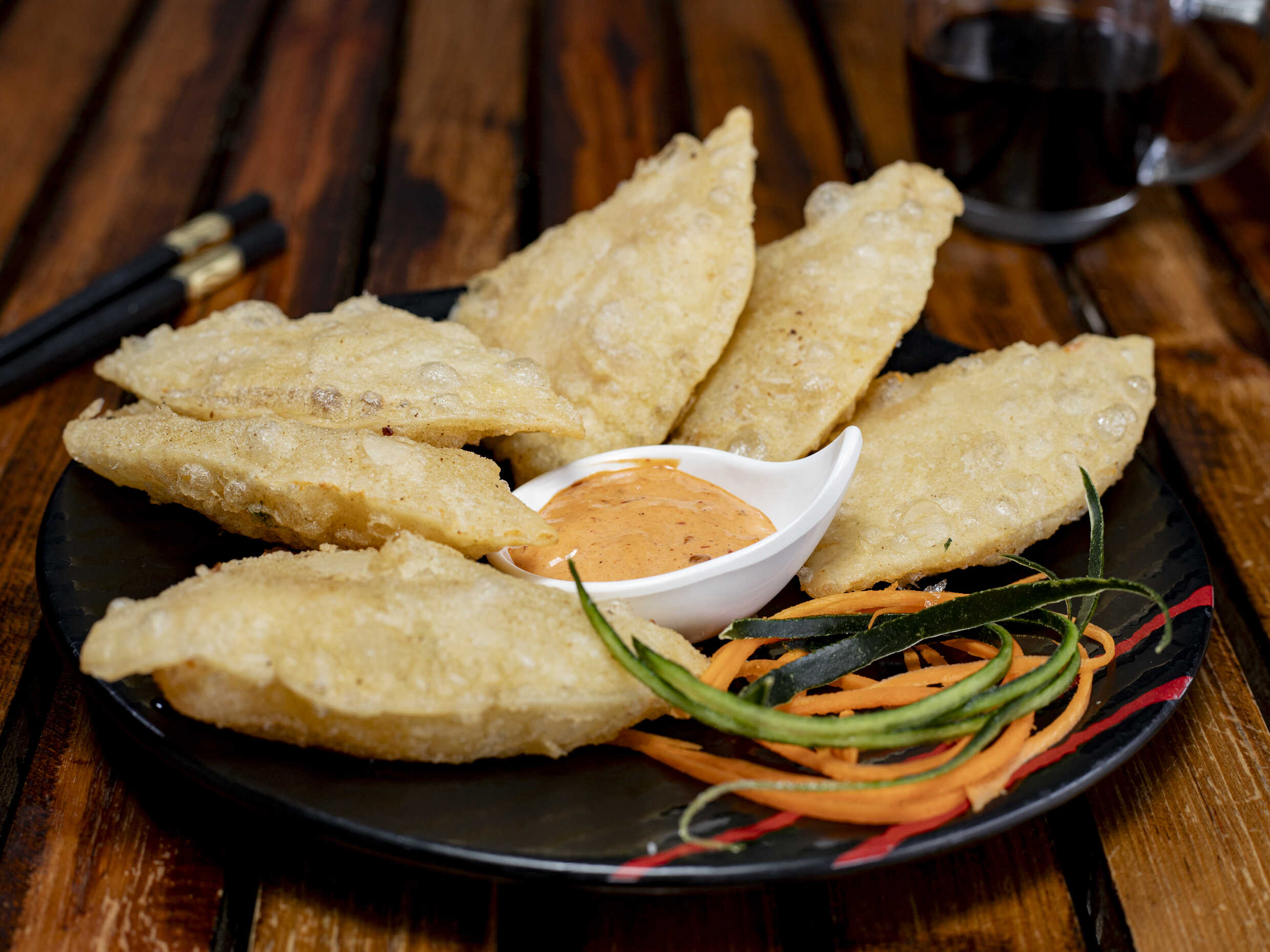 Rollitos fritos, rellenos de germen de soya y el ingrediente a su elección, bañados con salsa de anguila, pollo, res, camarón, salmón o pulpo.