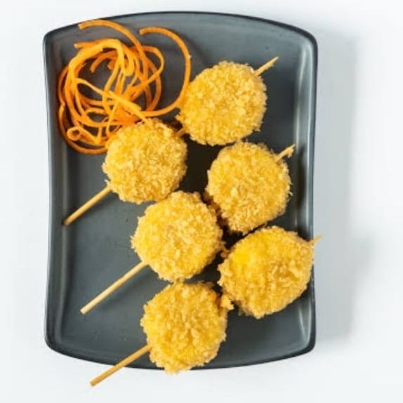 8 Piezas, plátano de macho empanizado, acompañado de aderezo chipotle.