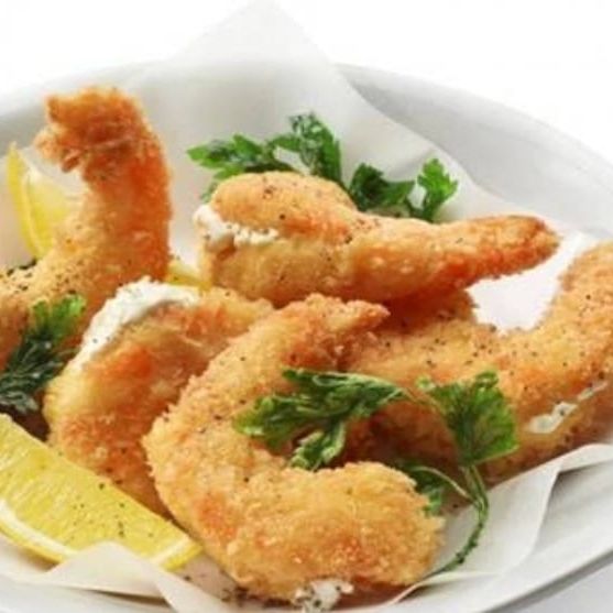 Camarones capeados, rellenos de queso Philadelphia, acompañados de aderezo chipotle.