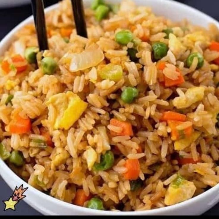 Arroz frito, acompañado de zanahoria, calabaza, cebolla.