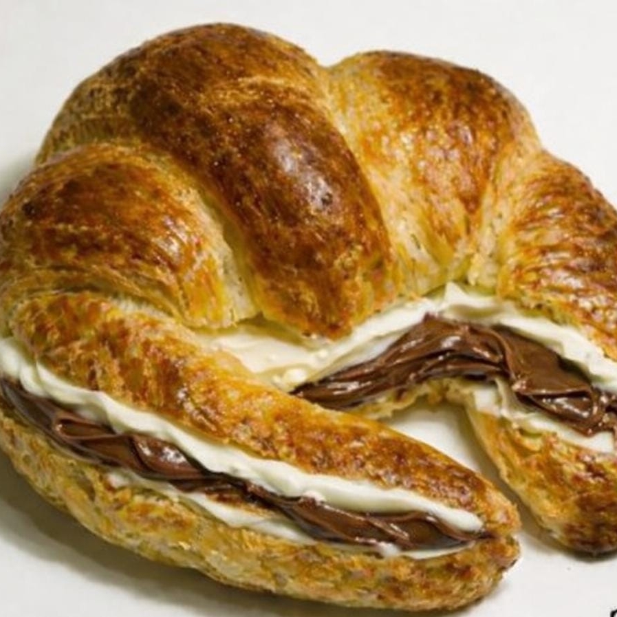 Cuernito dulce relleno de queso Philadelphia y Nutella
