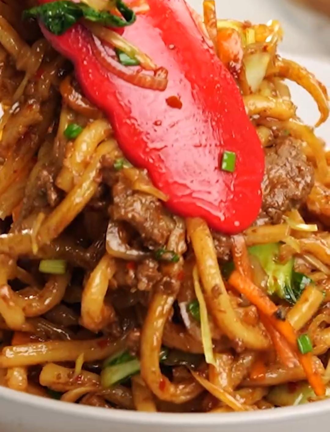 Res 200 g, pasta 200 g, zanahoria 50 g, calabaza 50 g, germen 50 g y soya 2 oz.