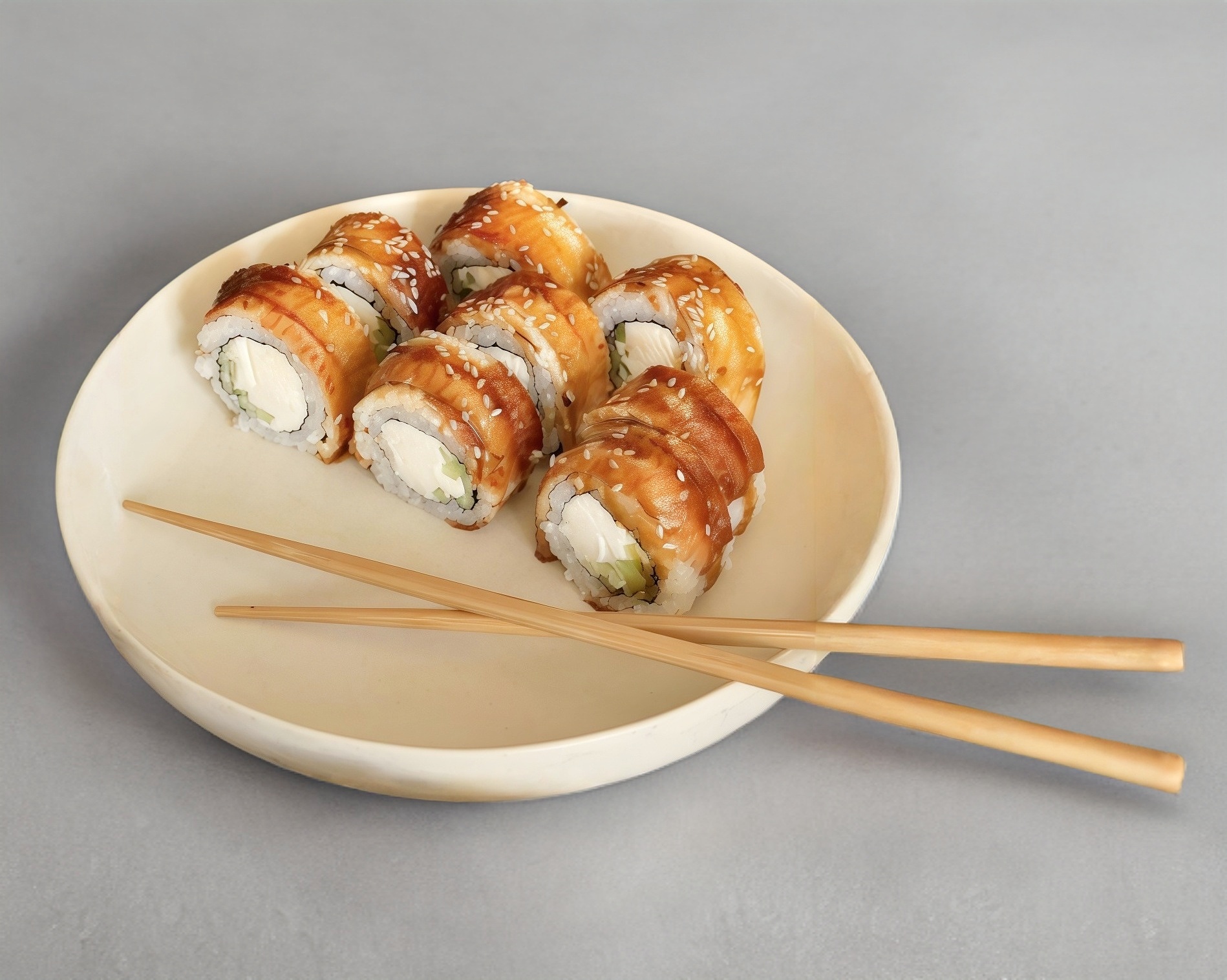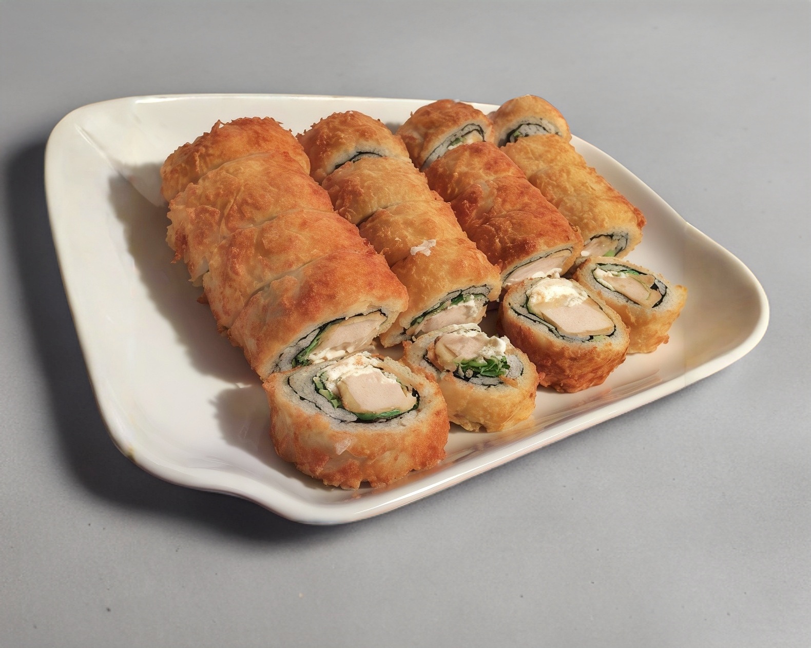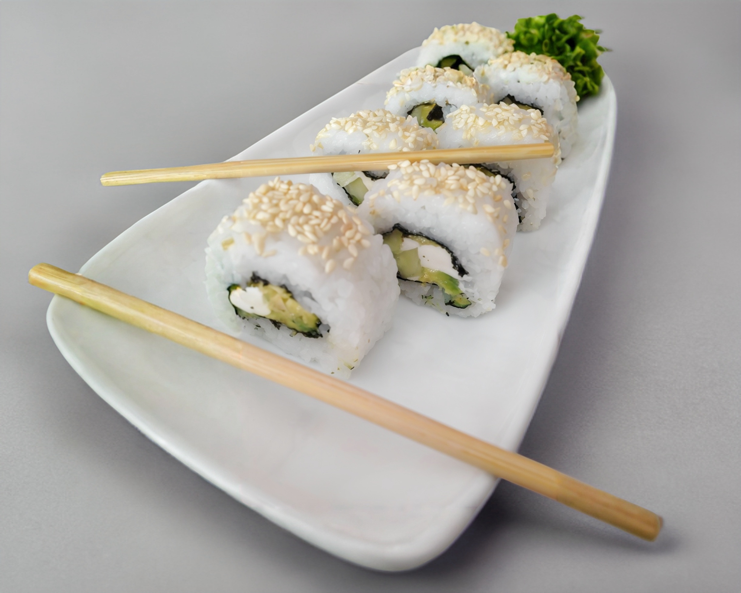 Arroz 200 g, queso 50 g, pepino 50 g y salsa tampico por fuera.