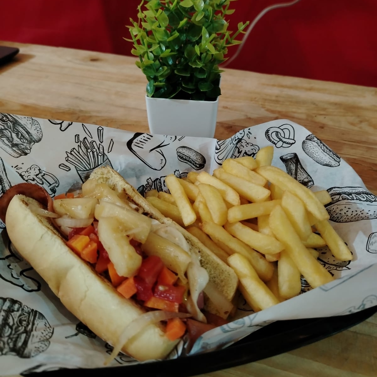 Hot Dog (Sencillo o Hawaiano) + Papas + Refresco sabor