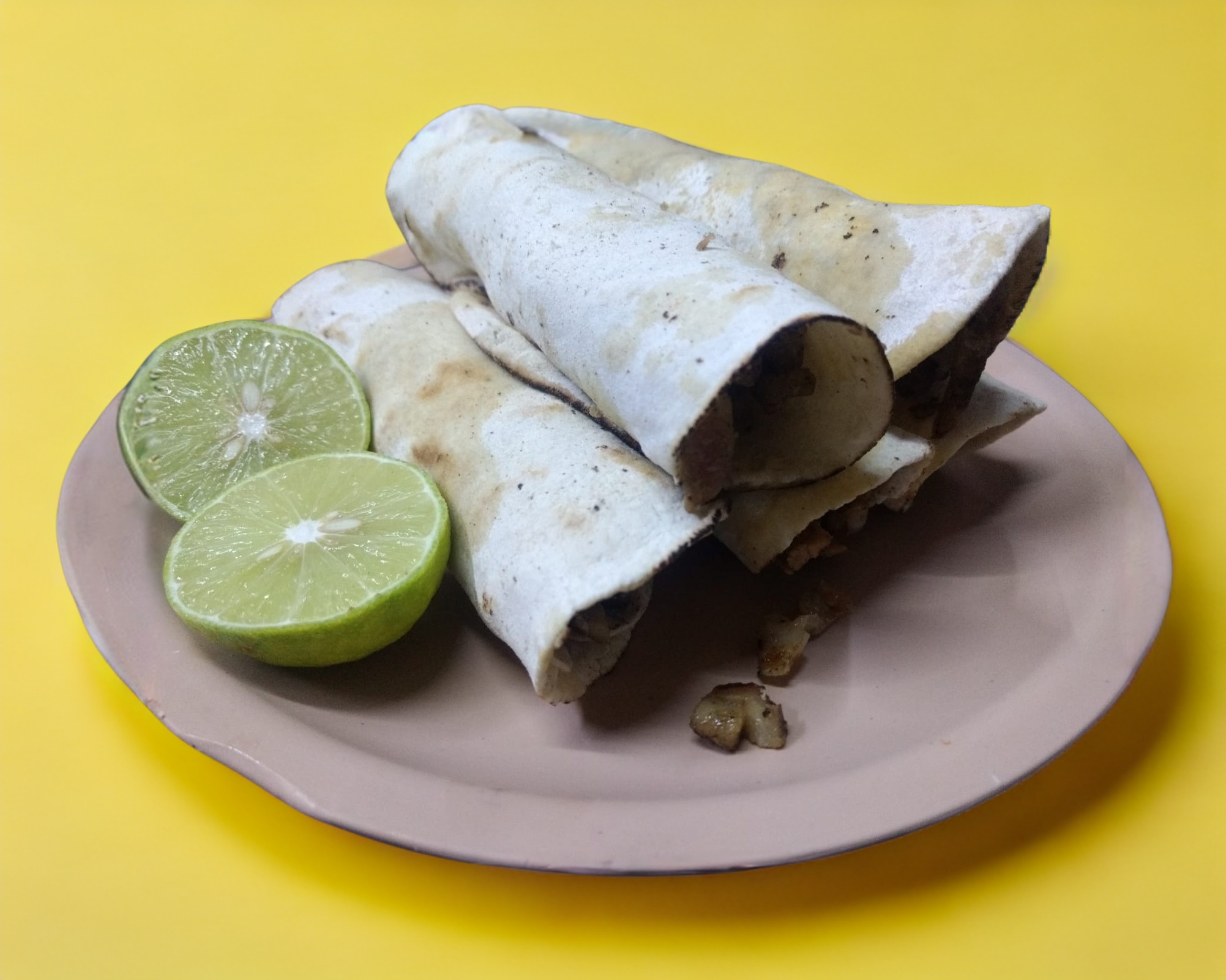 10 de tortillas de maíz, 5 tortillas de harina con salsa árabe + limones