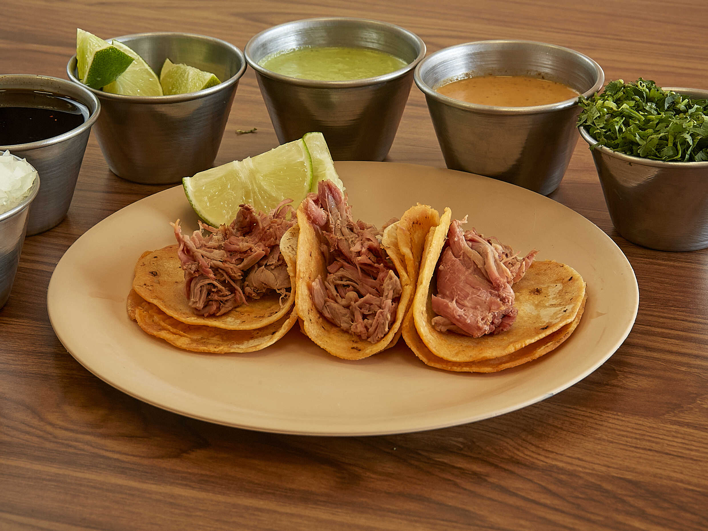 Incluye: limones, cebolla, cilantro, salsas(verde, roja y macha), cebollas moradas y tortillas