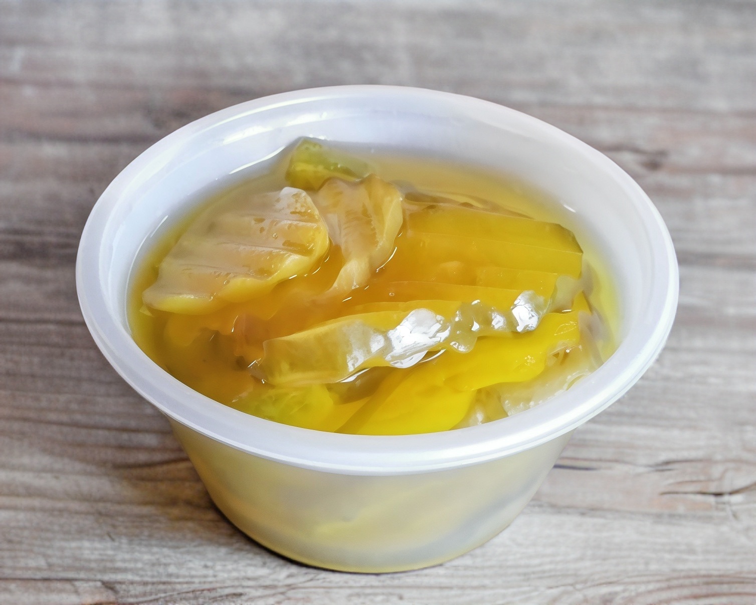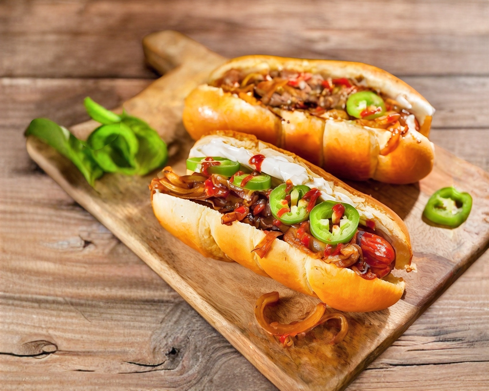 Salchicha de pavo, jitomate, cebolla, rajas, mayonesa mostaza y catsup.