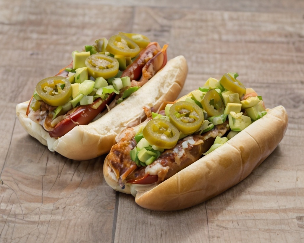 Salchicha de pavo, queso, tocino, guacamole e ingrediente tradicionales
