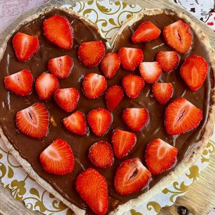 Pizza a base nutella y fresas para estas fechas importantes si darás algo dalo de corazón.