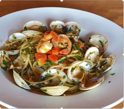 Fresca pasta con almejas y camarón bañada en salsa especial de vino blanco.