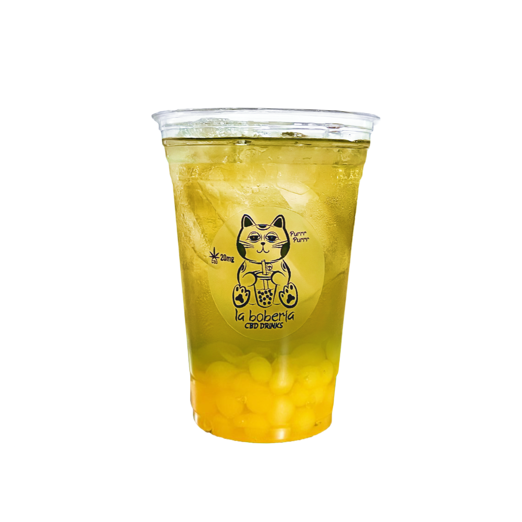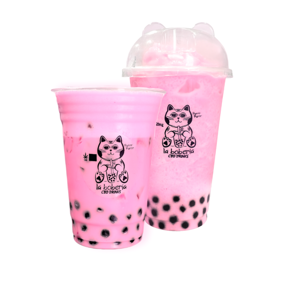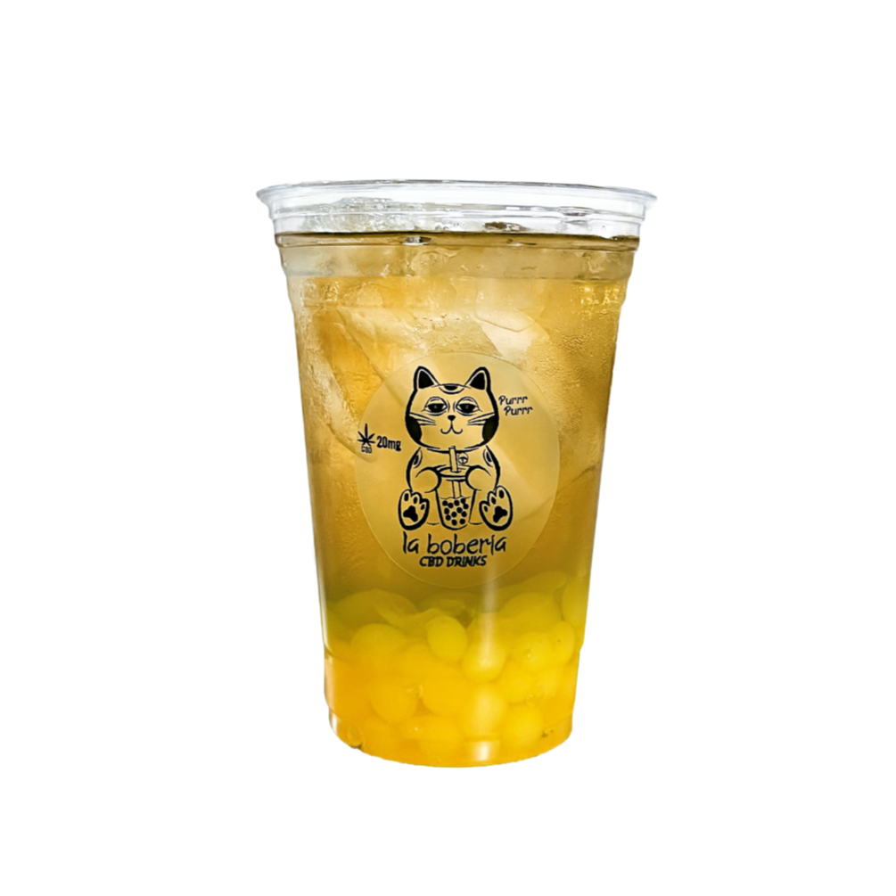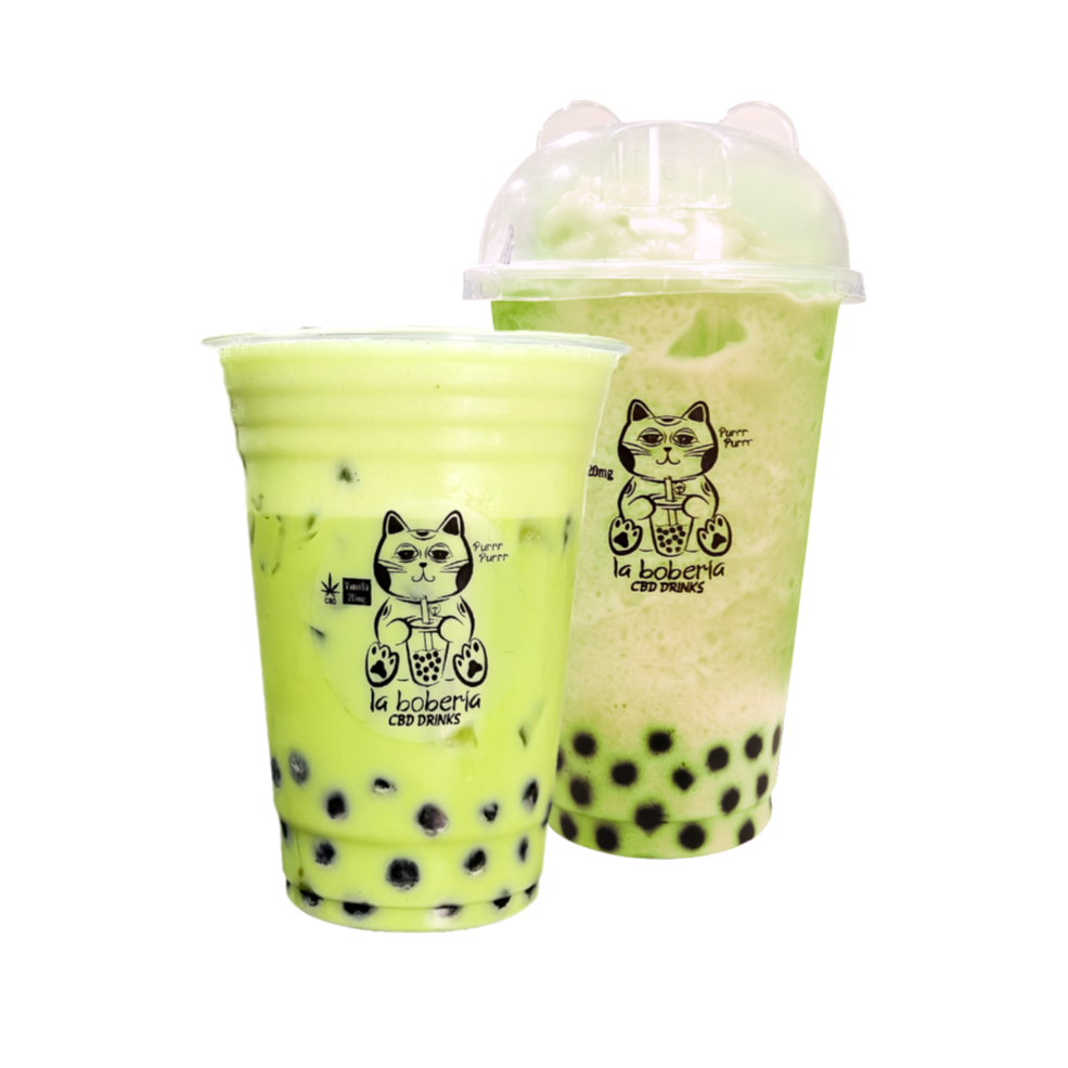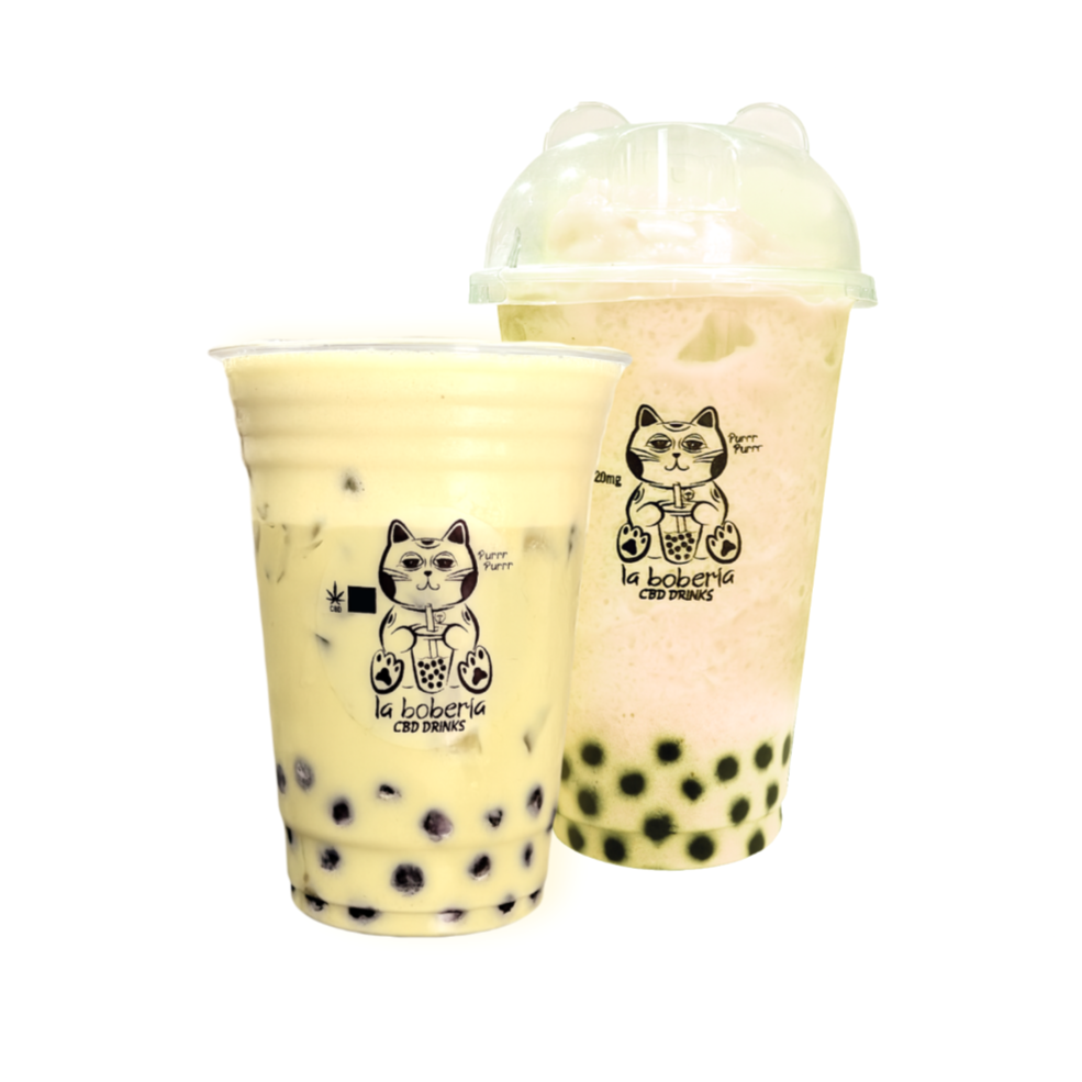 Bubble tea a base de té verde o negro, incluye perlas explosivas, infusionado con 20mg de cbd