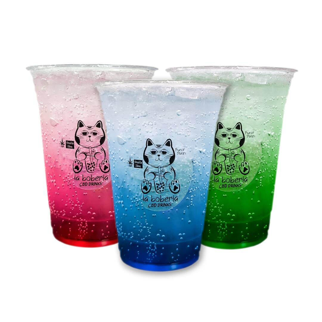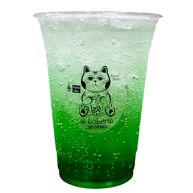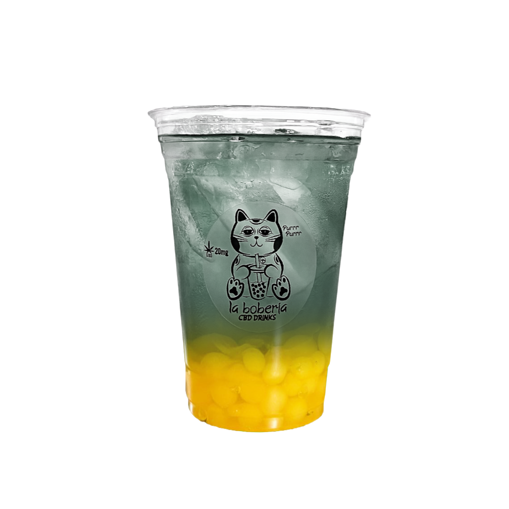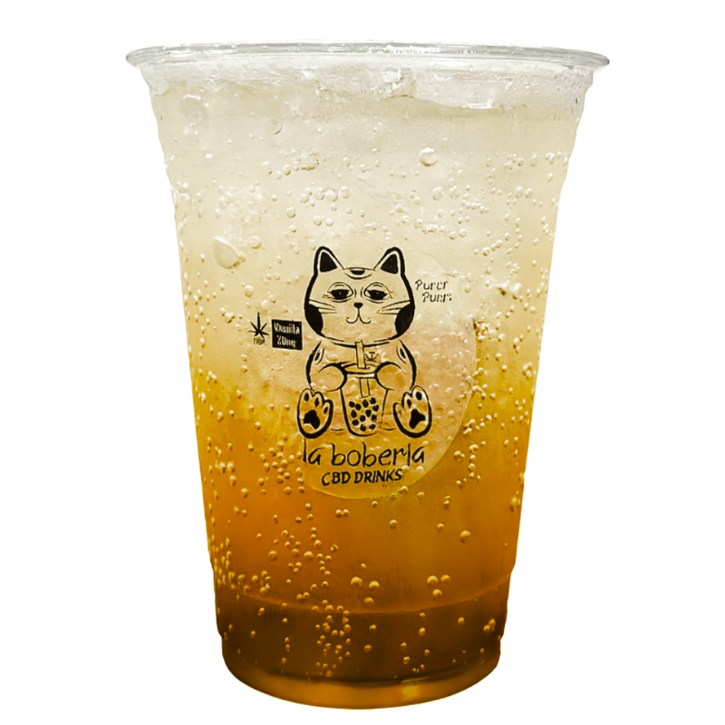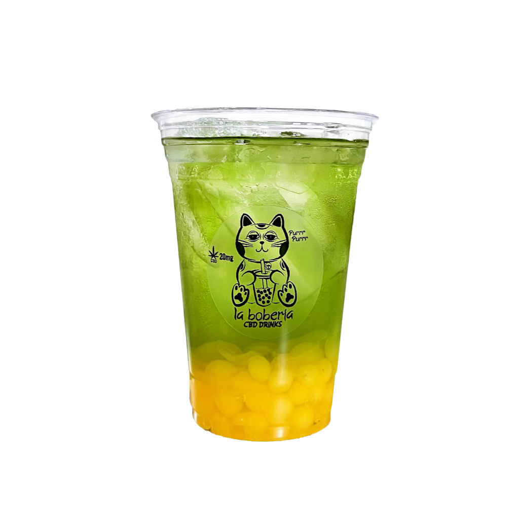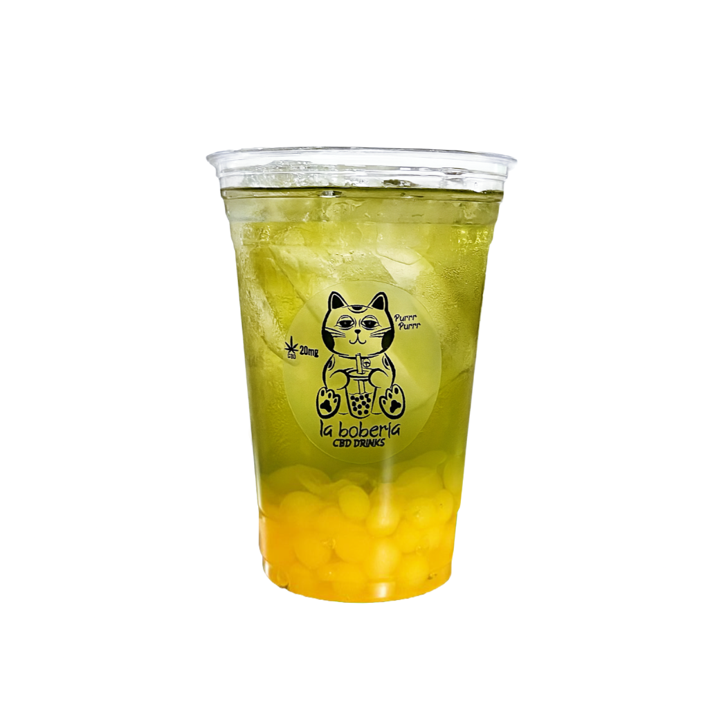 Bubble tea a base de té verde o negro, incluye perlas explosivas, infusionado con 20mg de cbd