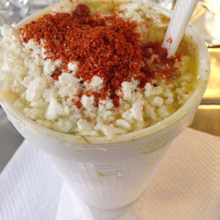 Se sirven calientes en un vaso, acompañados de capas de mayonesa, queso añejo desmoronado, jugo de limón y chile en polvo