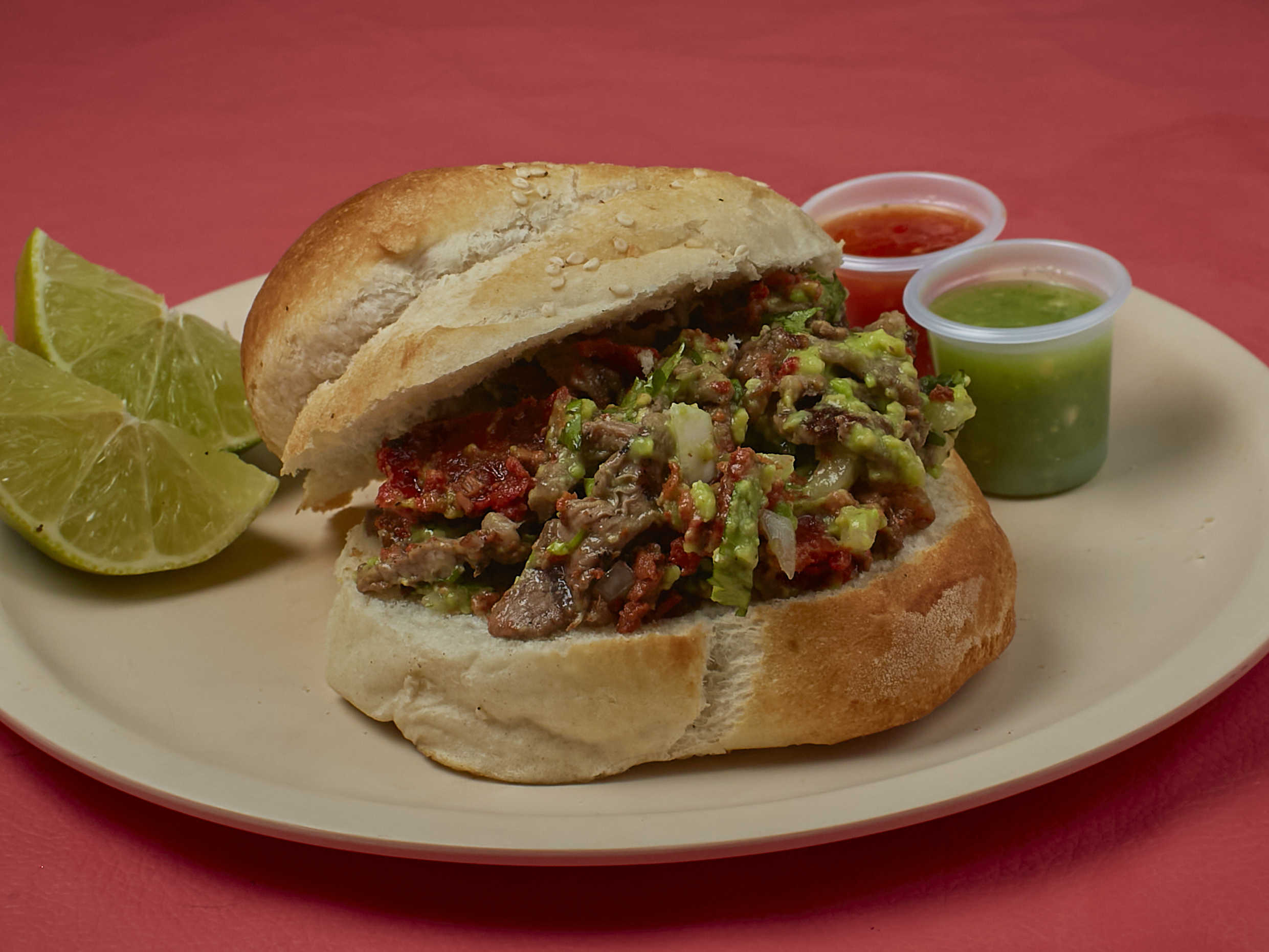 Cemita con carne de tu elección con verdura aparte.