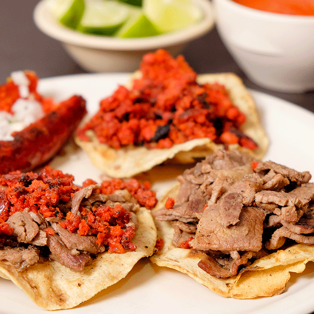 Tostada de carne de tu elección con verdura aparte.