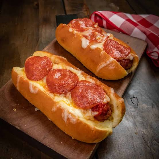 Pan salchicha jitomate cebolla ketchup momostazaueso gratinado manchego pepperoni