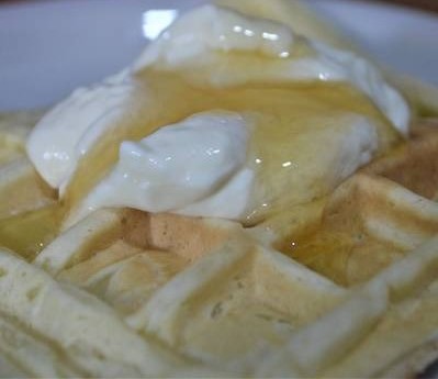 El clásico pan blanco bañado en mezcla de huevo y leche con un toque de canela, vainilla y mantequilla, acompañado de miel de maple.
