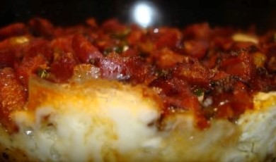 Gratinado y calientito, acompañado de salsa y tortillas de harina.