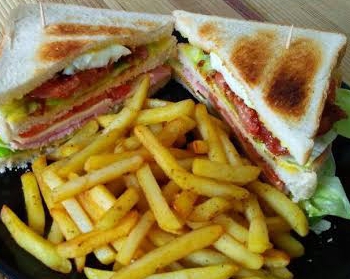 El clásico doble piso crujiente acompañado de papas a la francesa.