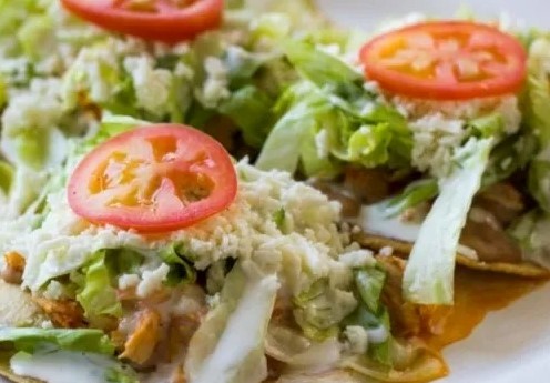 3 Piezas de crujientes tostadas con lechuga, pollo, frijoles, queso y crema acompañados de tu salsa favorita.