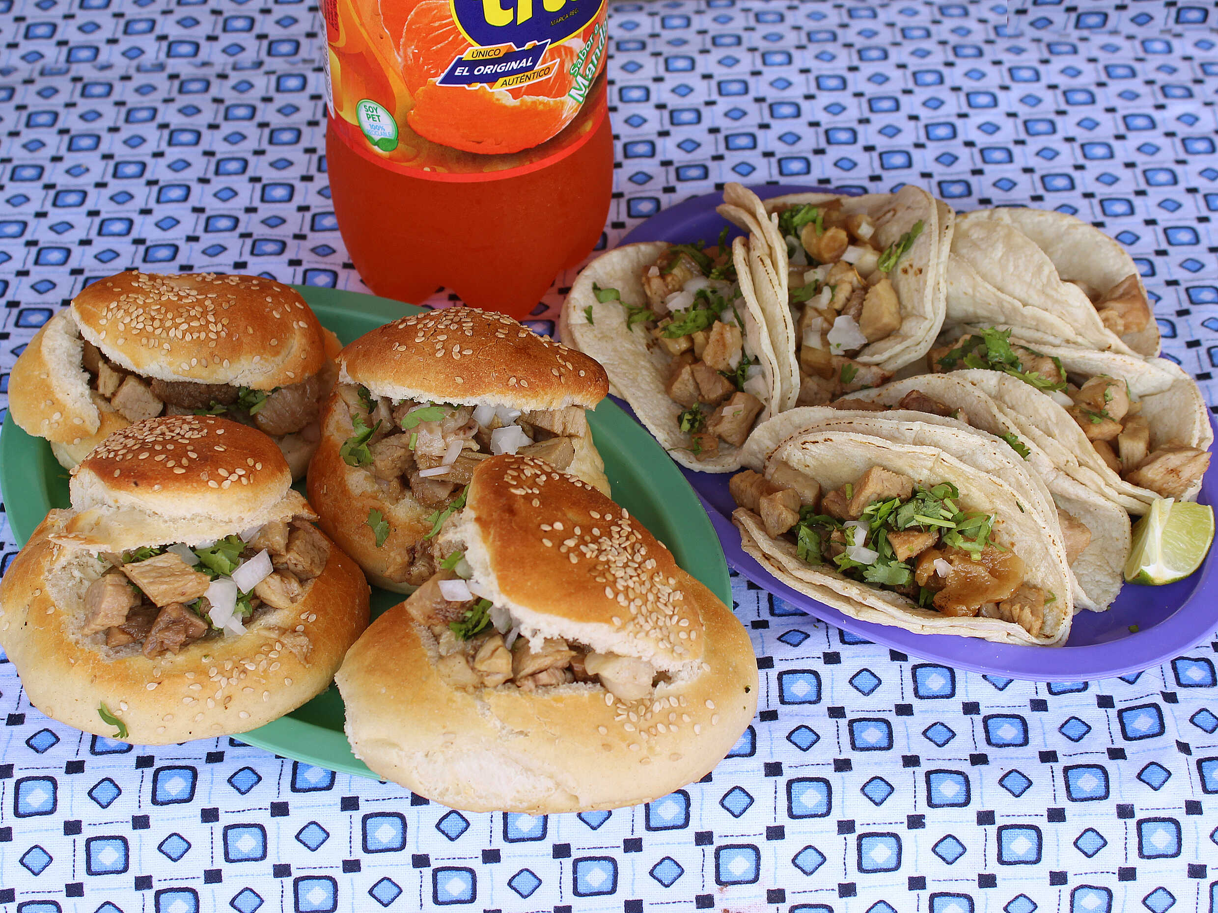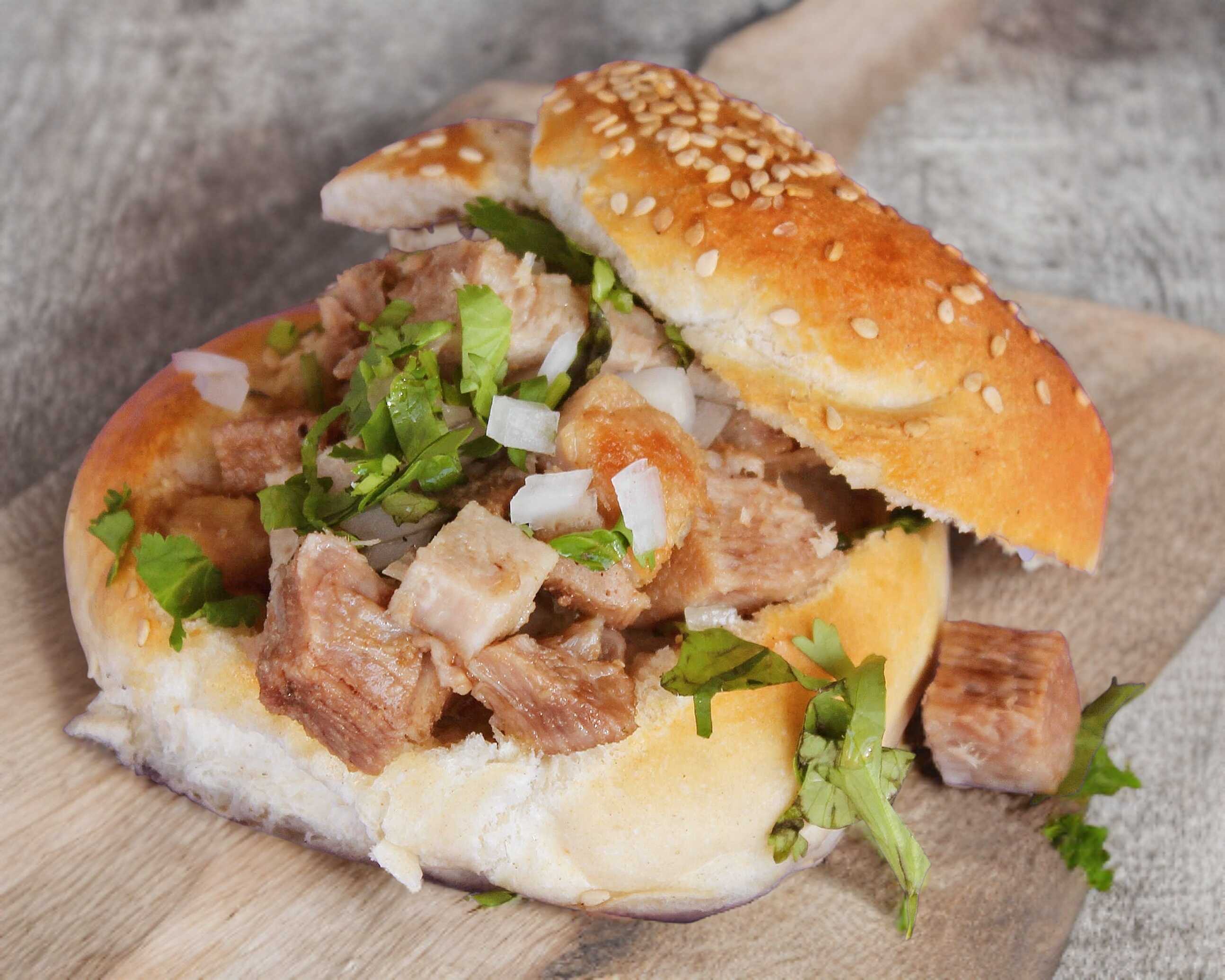 1 kilo de carnitas,(cuerito con maciza) solo surtido 1 kilo de tortillas, 5 panes cemitas, un refresco 2 litro con limones, cebolla, cilantro, salsa a elegir.