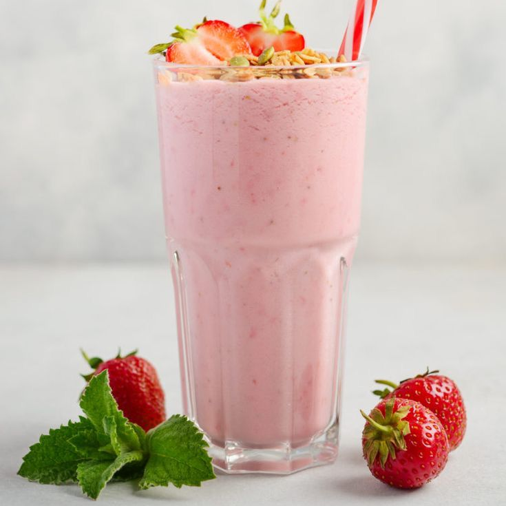Leche de almedra (sin azúcar) fruta favorita y grasa saludable de tu elección. Endulzado con Monk Fruit.