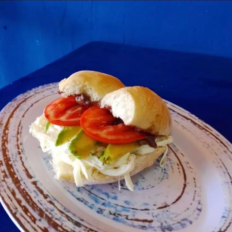 Deliciosa torta de queso acompañada de frijoles queso blanco mayonesa aguacate y jitomate