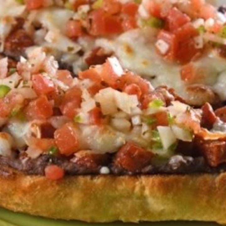 2 Deliciosos molletes con queso manchego natural o chorizo acompañado de pico de gallo