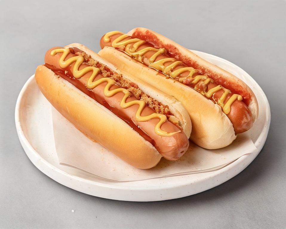 Hot dog de la casa, acompañado de jamon, champiñones y queso