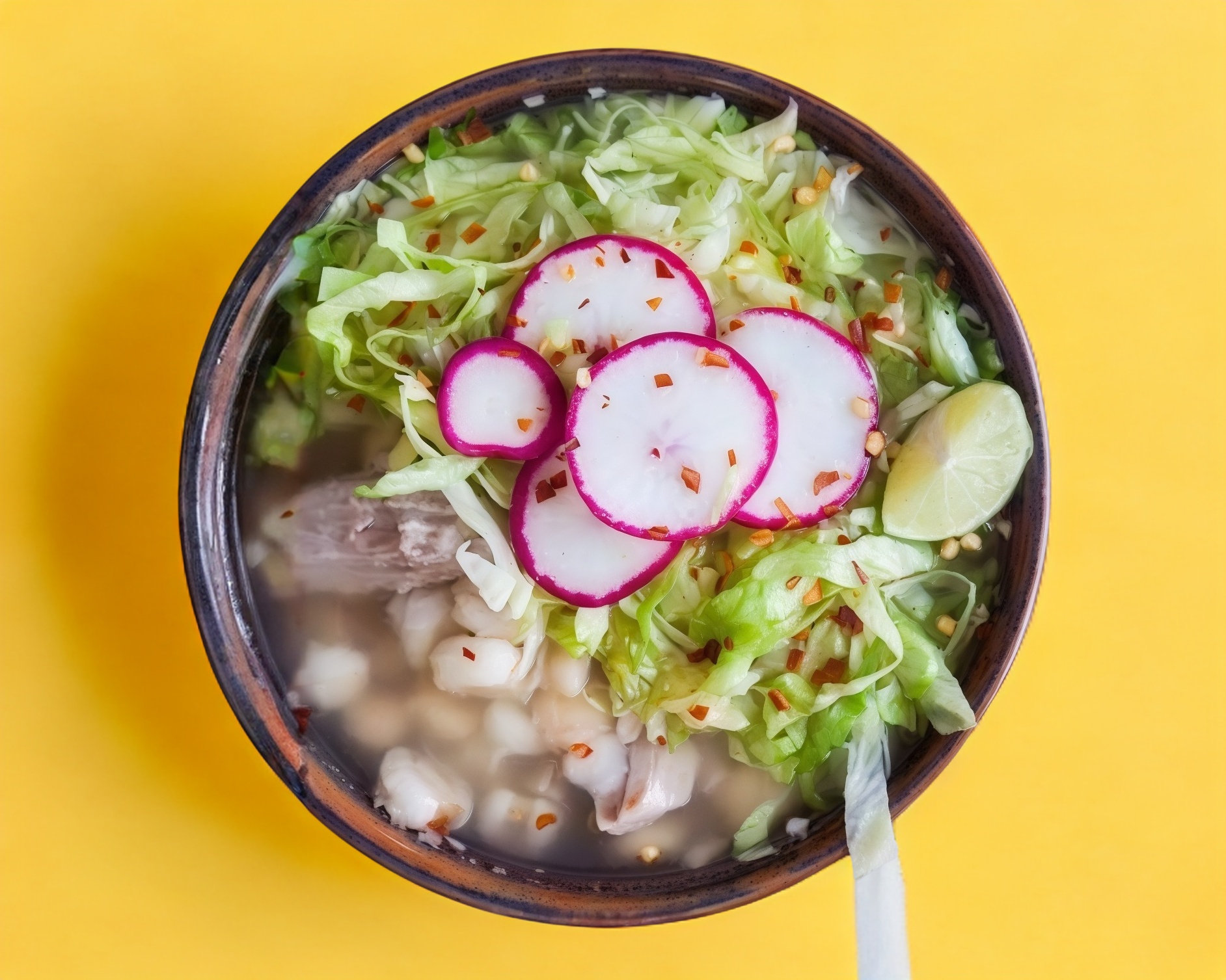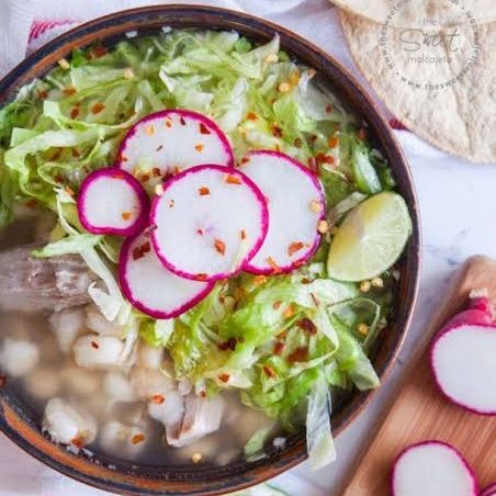 1lt de pozole de pollo acompañado con lechuga,orégano,chile seco,limón,cebolla,rabanos