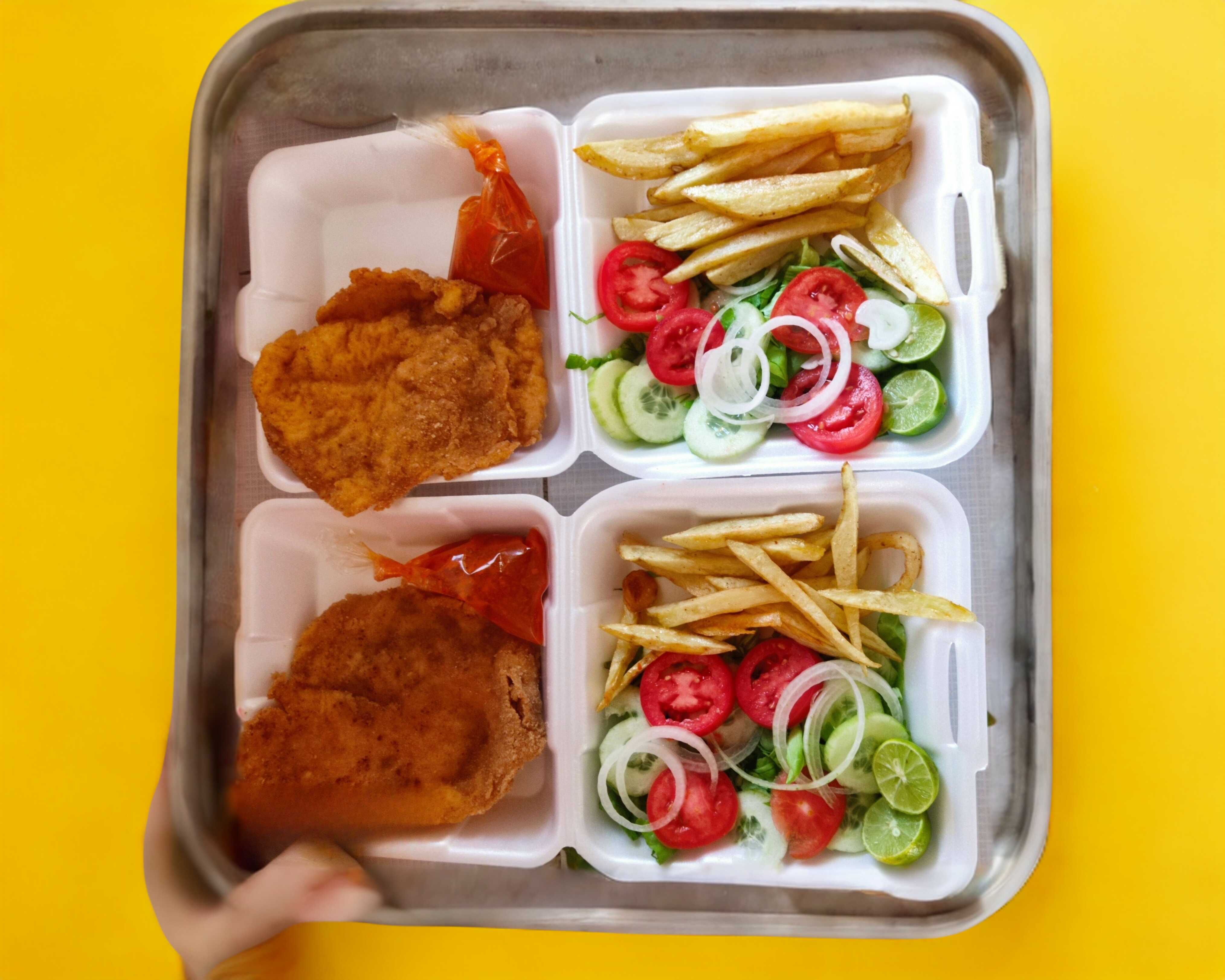 Milanesa de cerdo o puerco con ensalada del día+ vaso de agua del día