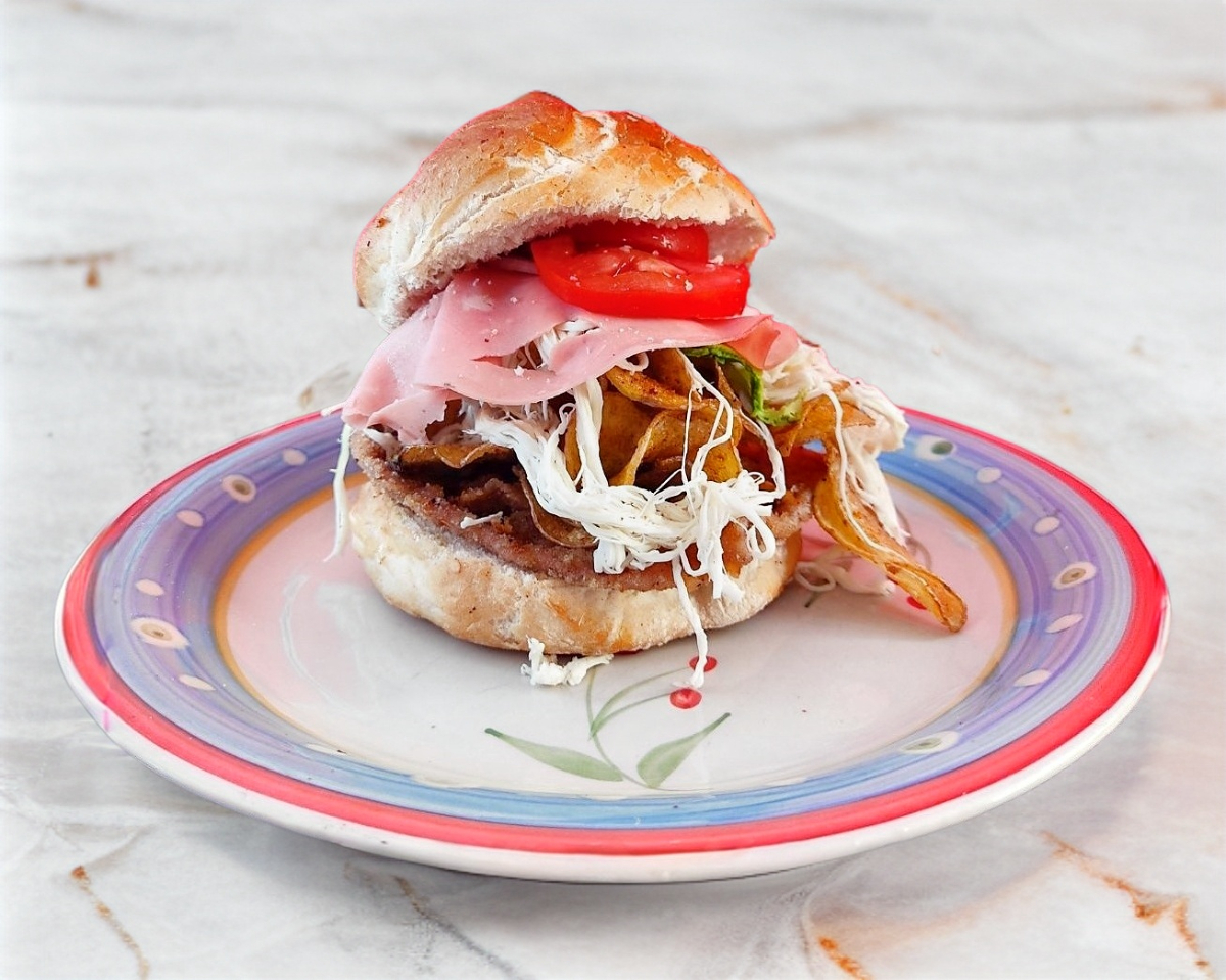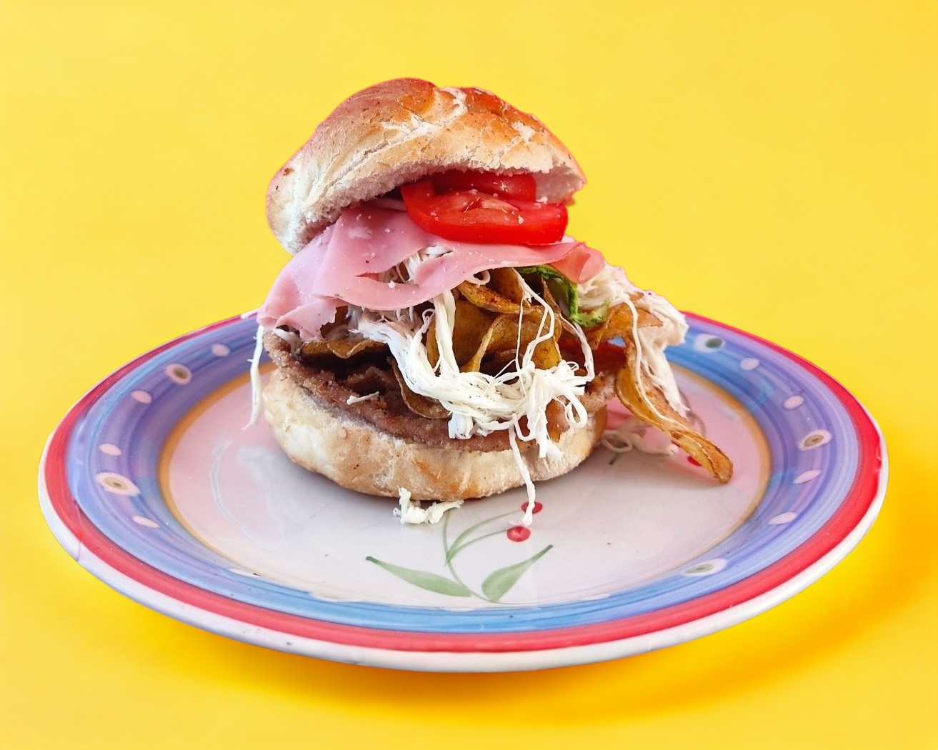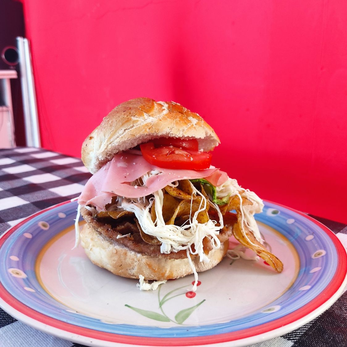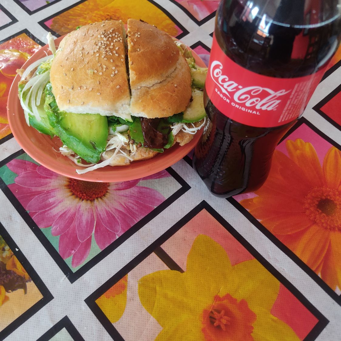 Pan de cemita con milanesa de pollo ,papas fritas , quesilllo, jitomate,cebolla y picante a elegir