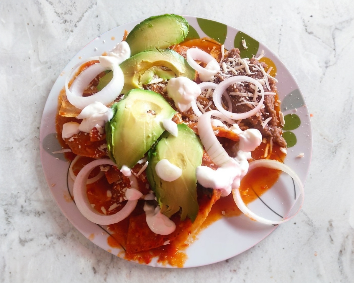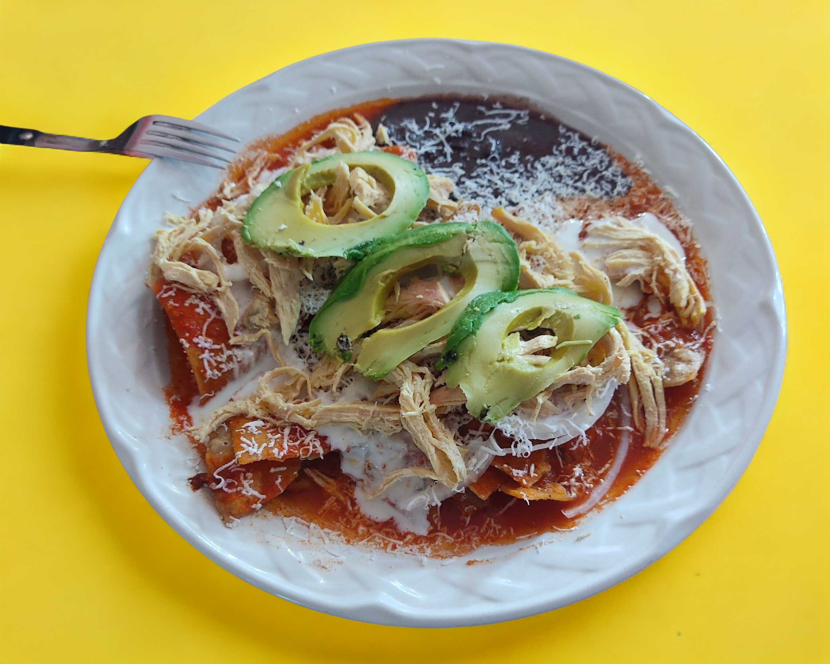 Deliciosos chilaquiles con pollo + vaso de agua del día 400 ml