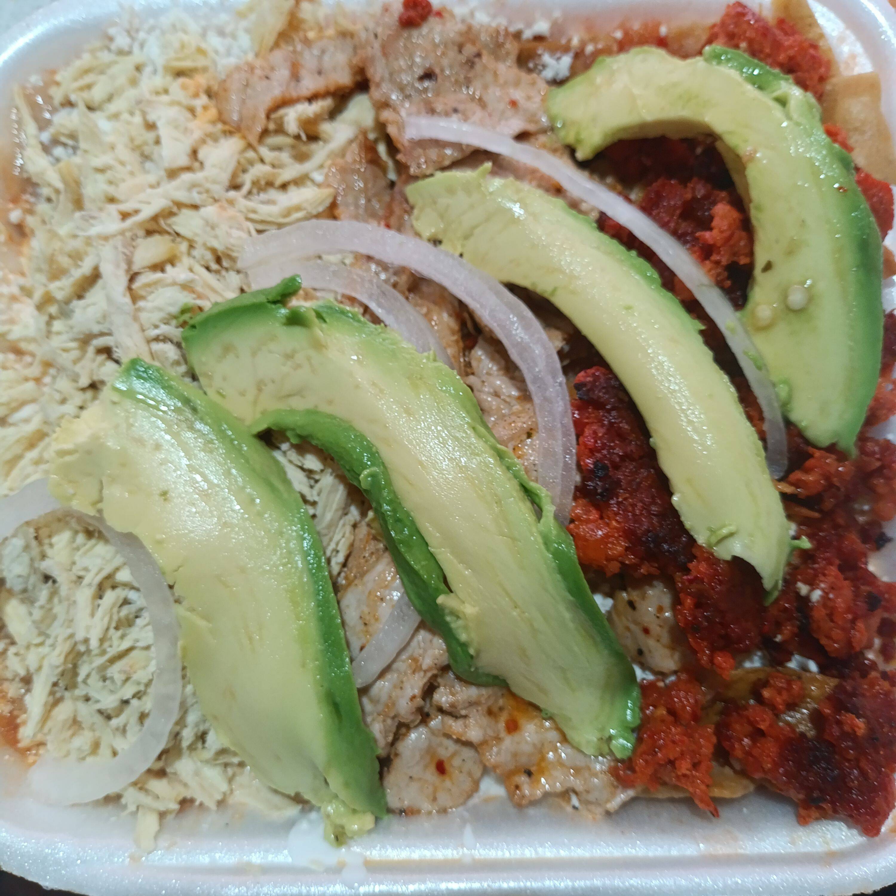 Chilaquiles verdes o rojos ,con pollo ,bisteck y longaniza