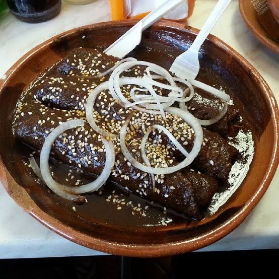 60 grs de totopos bañados en un delicioso mole poblano acompañados por pollo deshebrado,cebolla,crema ,queso y ajonjoli