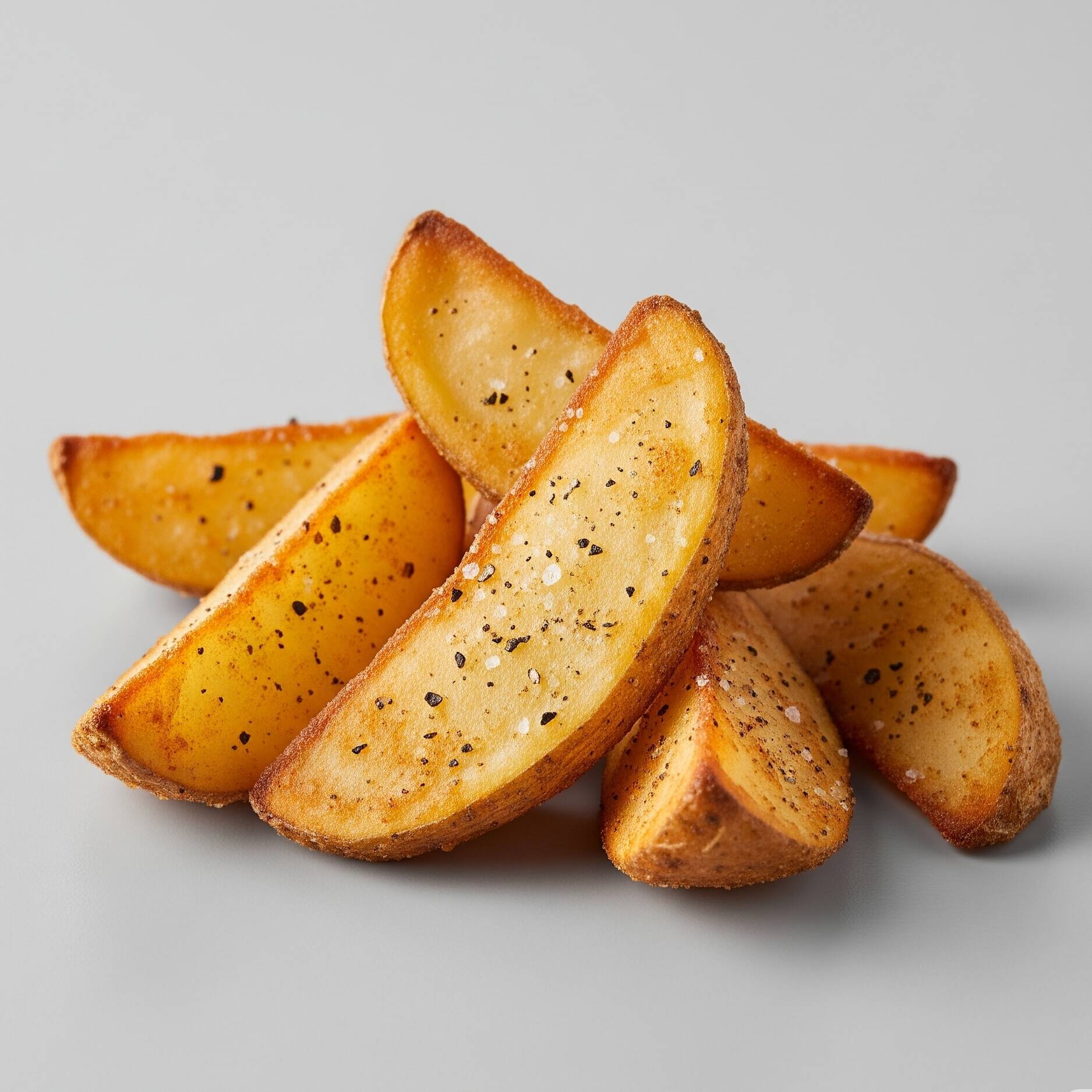 Riquisimos gajos de papa condimentados, con queso y catsup o salsa