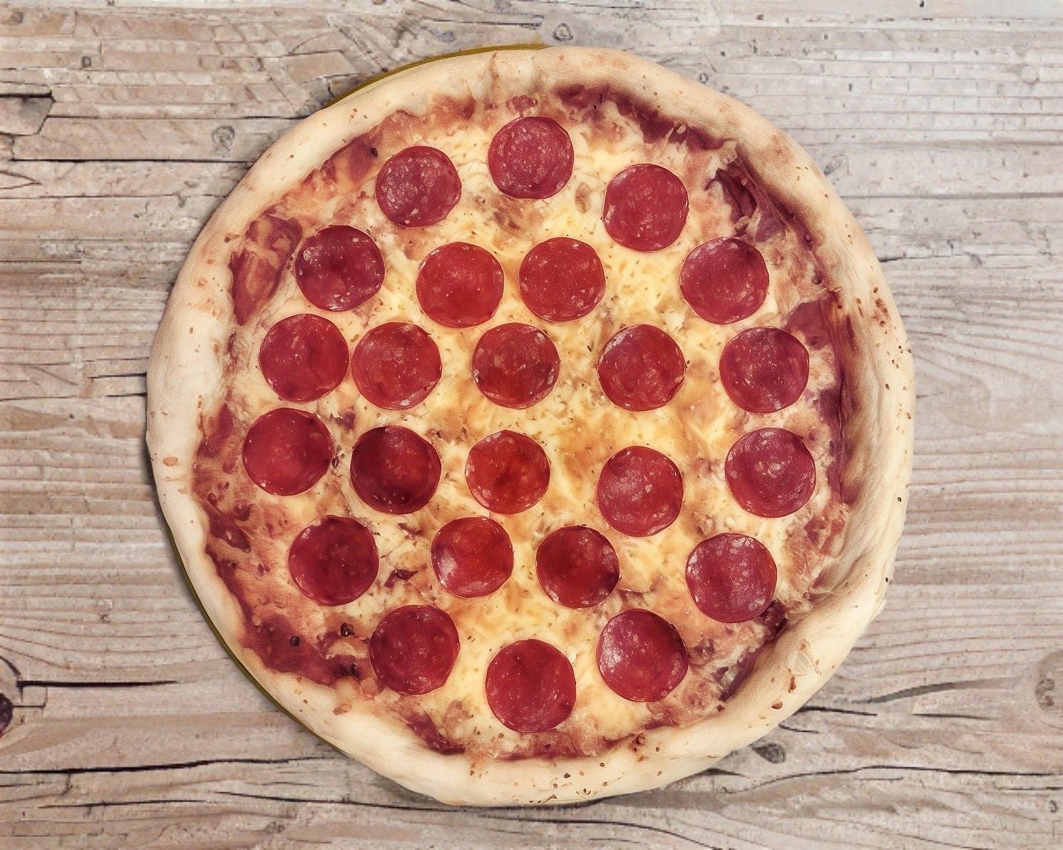 Masa fina y crujiente con salsa de tomate casera, queso manchego y pepperoni.