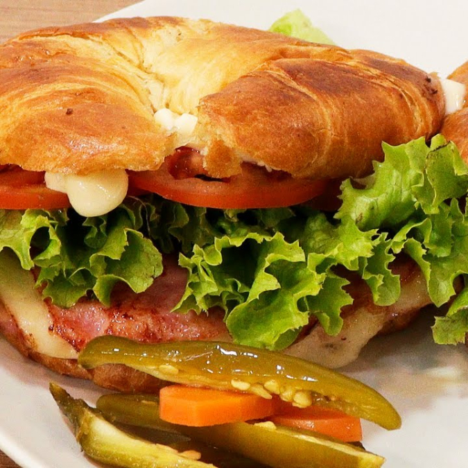 1 CUERNO CON MAYONESA JAMON LECHUGA JITOMATE Y QUESO