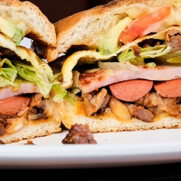 MILANESA JAMON SALCHICHA AGUACATE QUESILLO JITOMATE FRIJOLES MAYONESA Y MANTEQUILLA